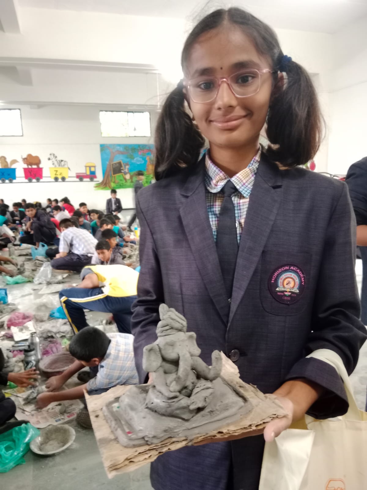 In the spirit of creativity and tradition, Horizon Academy, Sinnar organized a Ganpati idol-making workshop for students. The session was beautifully conducted by our talented Art Teachers – Mr. Pritam Chavan, Mr. Satish Athawale, and Mrs. Kalyani Rahane – who guided students in crafting eco-friendly clay idols of Lord Ganesha.