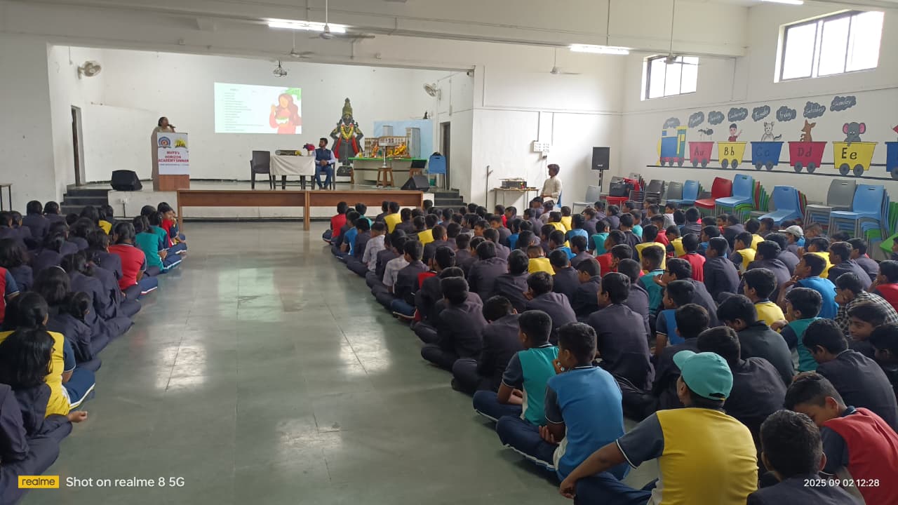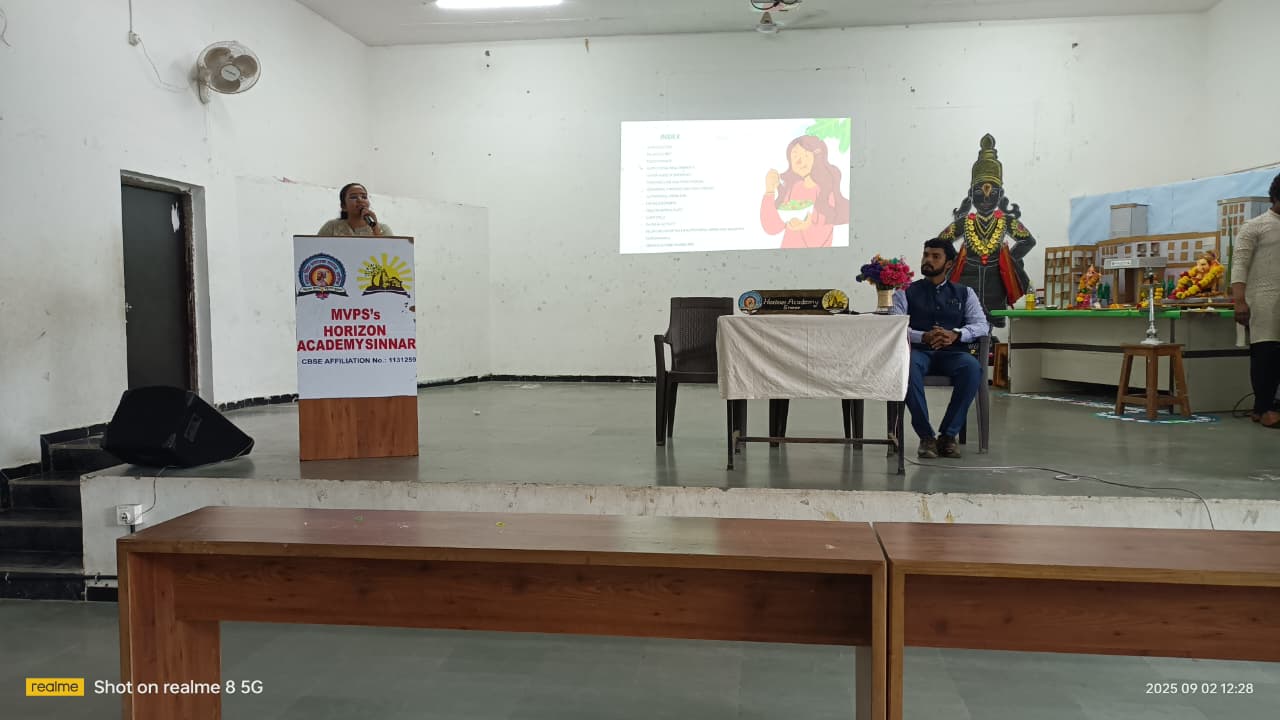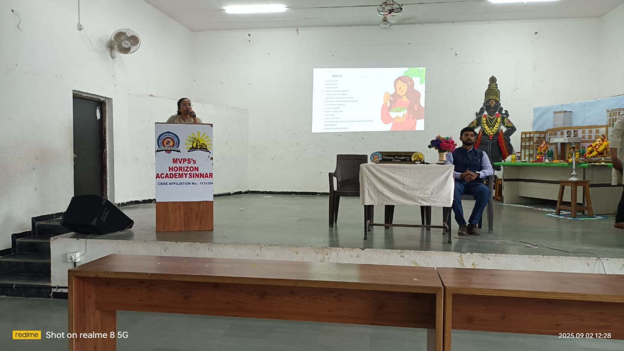 On 2nd September 2025, Horizon Academy, Sinnar, successfully organized an informative awareness program in the school multipurpose hall on the theme Healthy Eating and Balanced Diet.